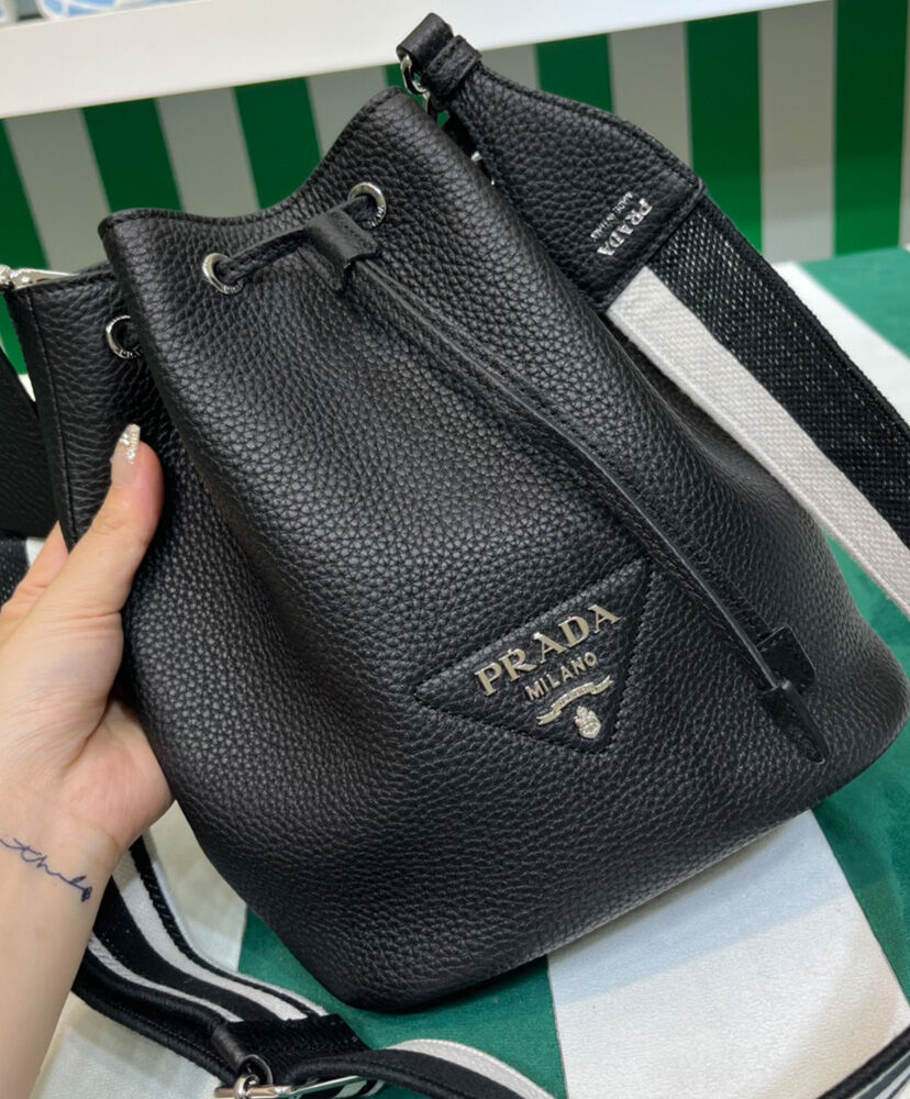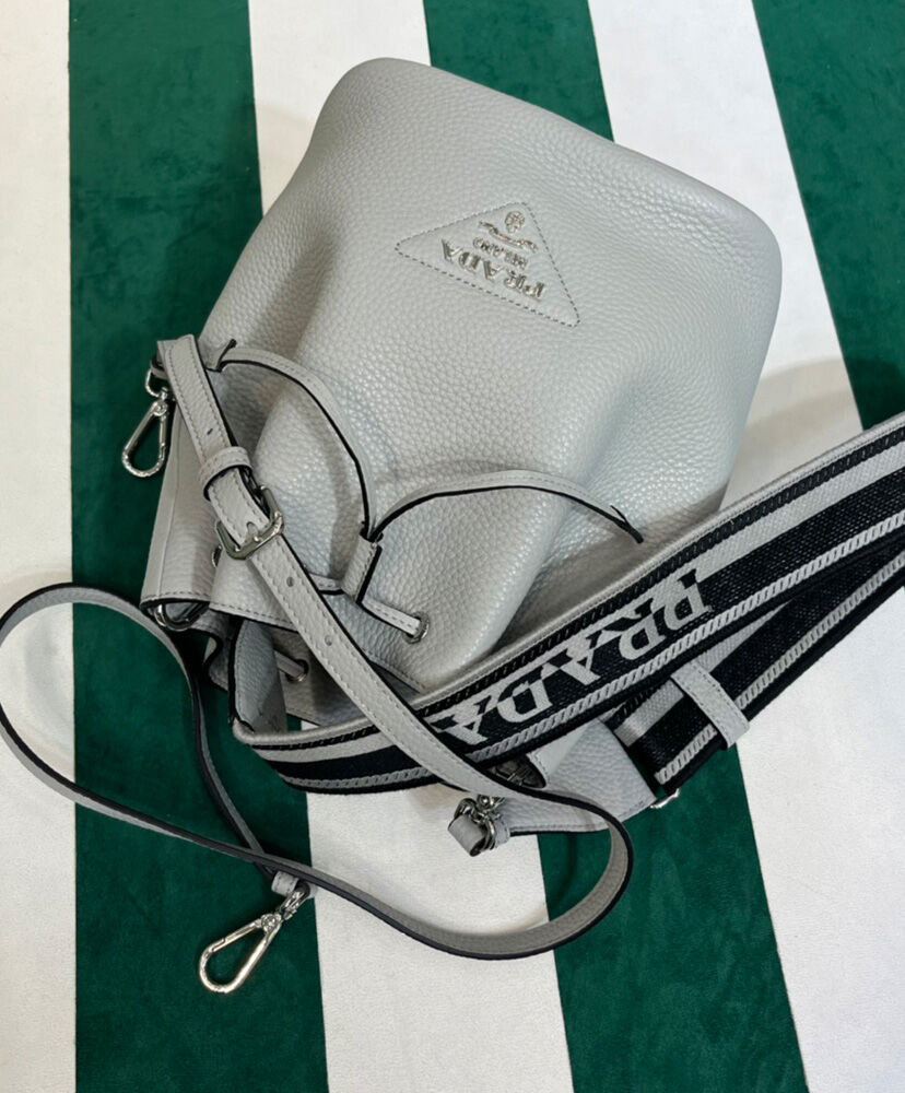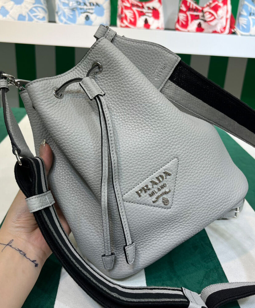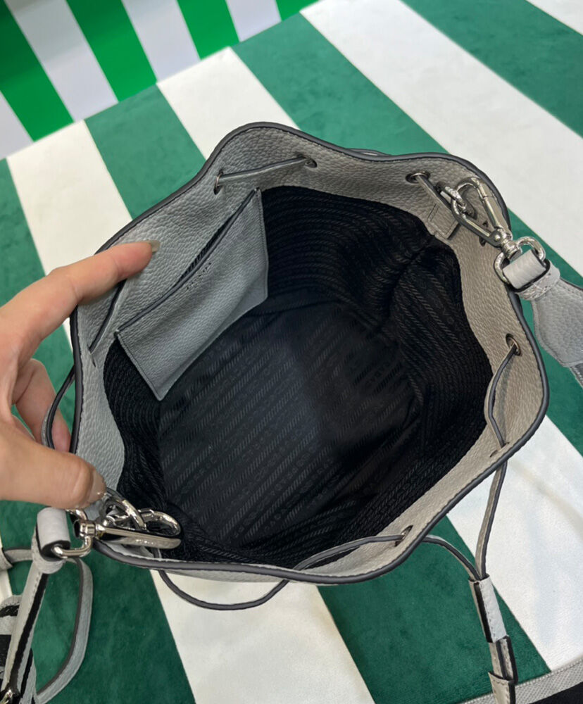 Prada Leather Bucket Bag 1BE060 Light Blue