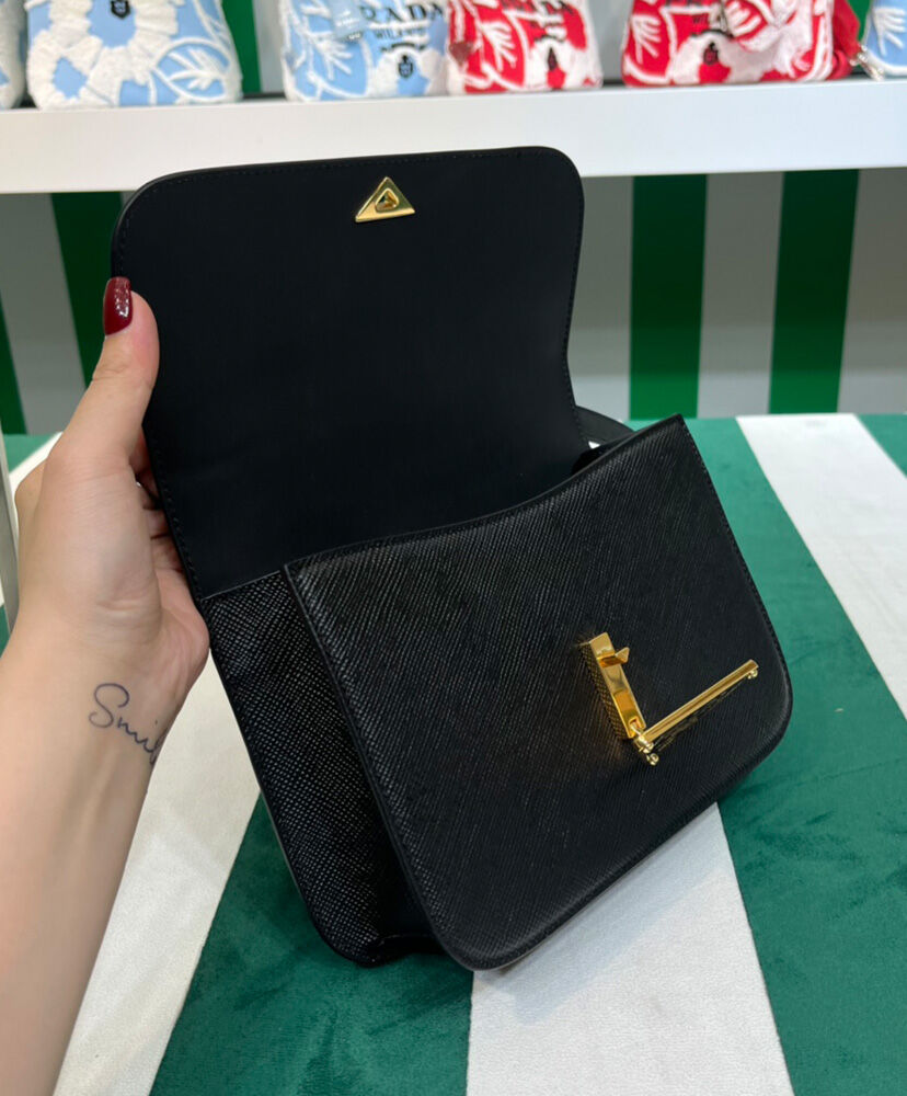Prada Saffiano Leather Shoulder Bag Black