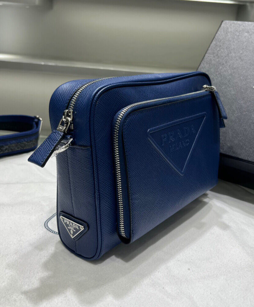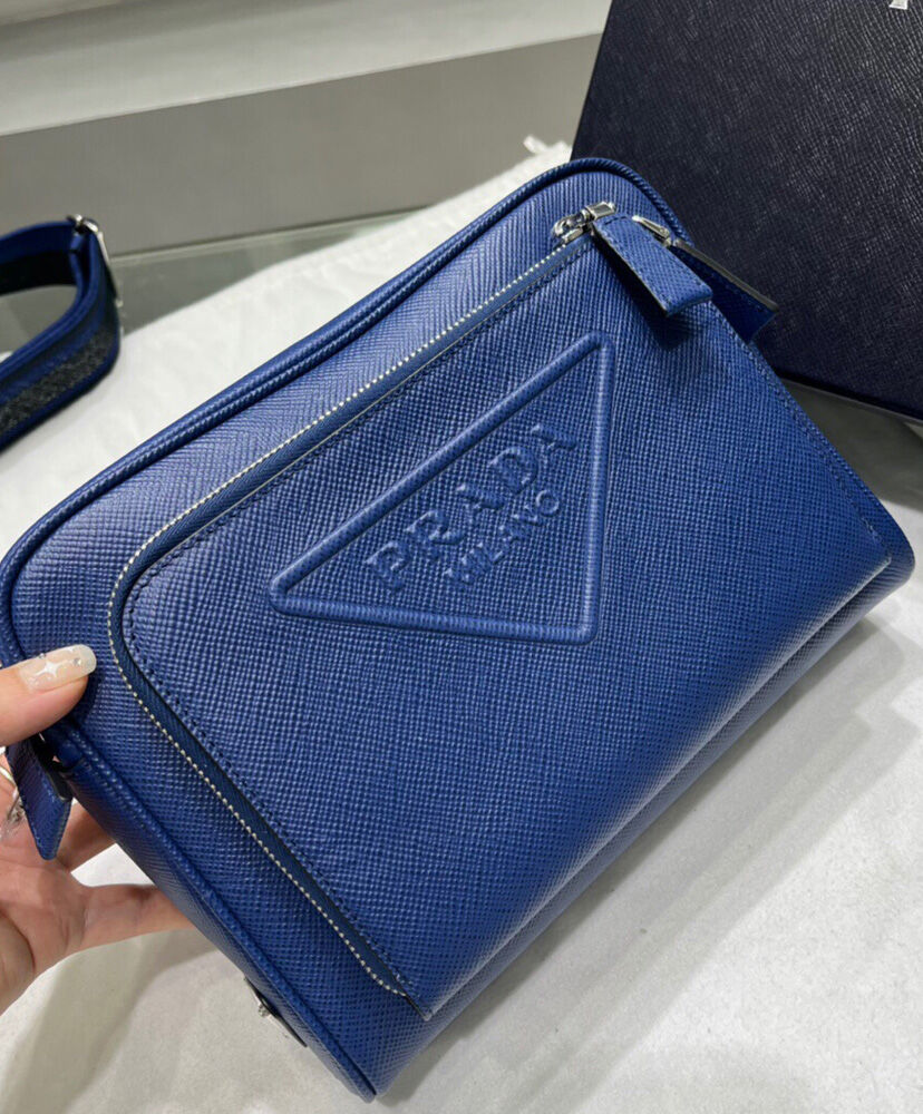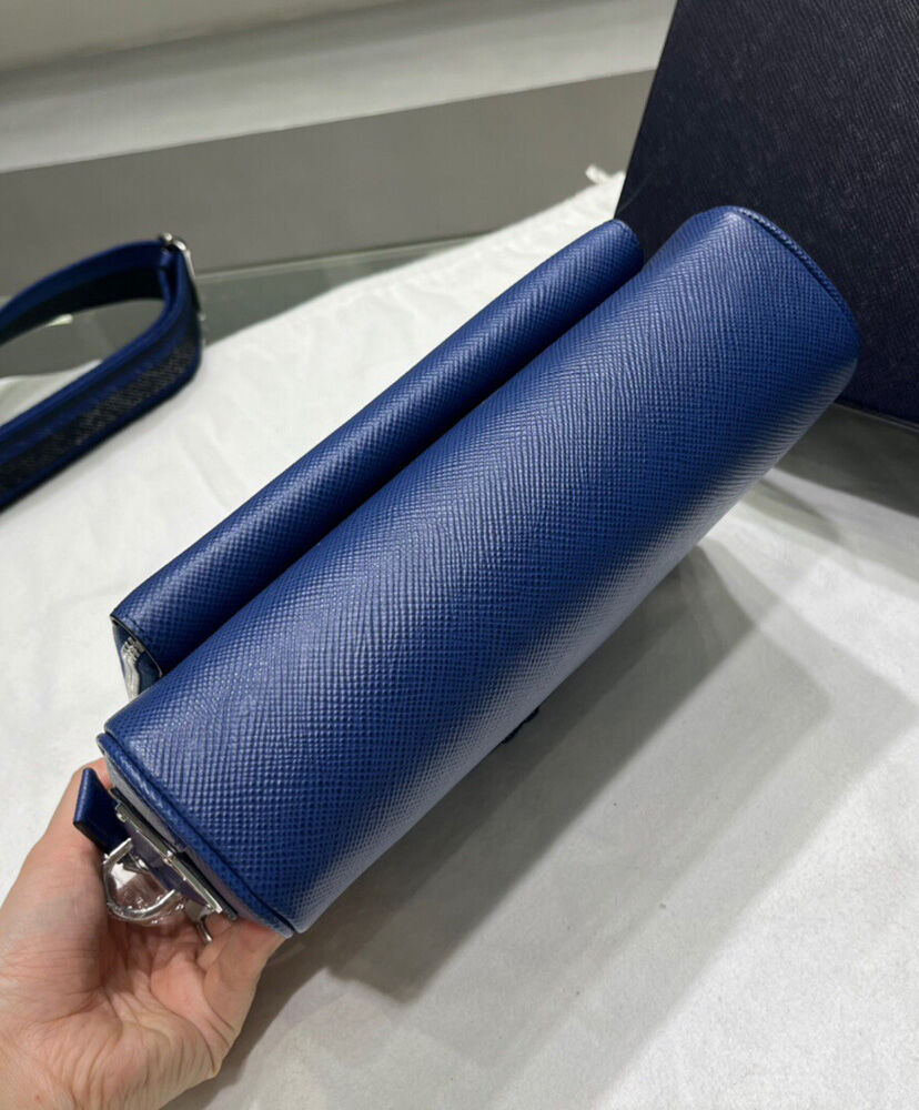 Prada Saffiano Leather Shoulder Bag Blue