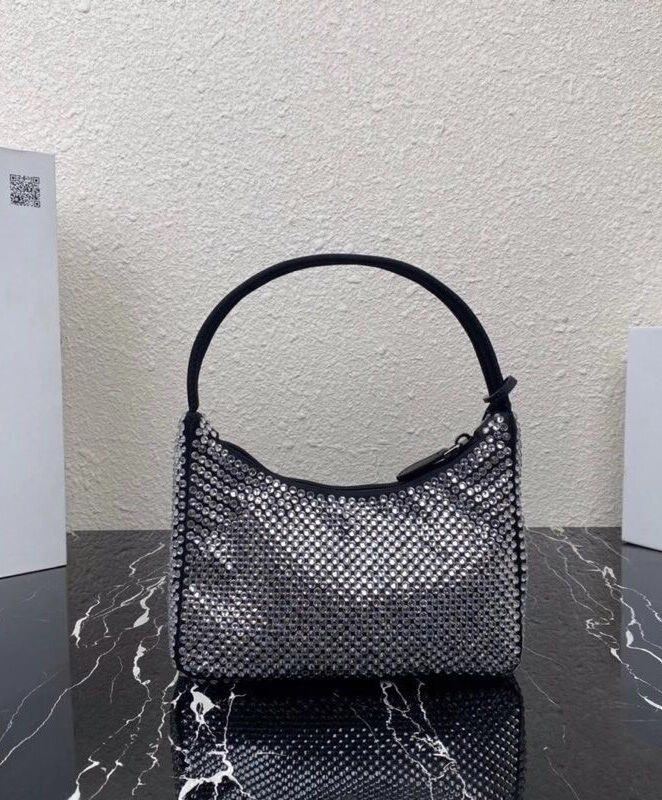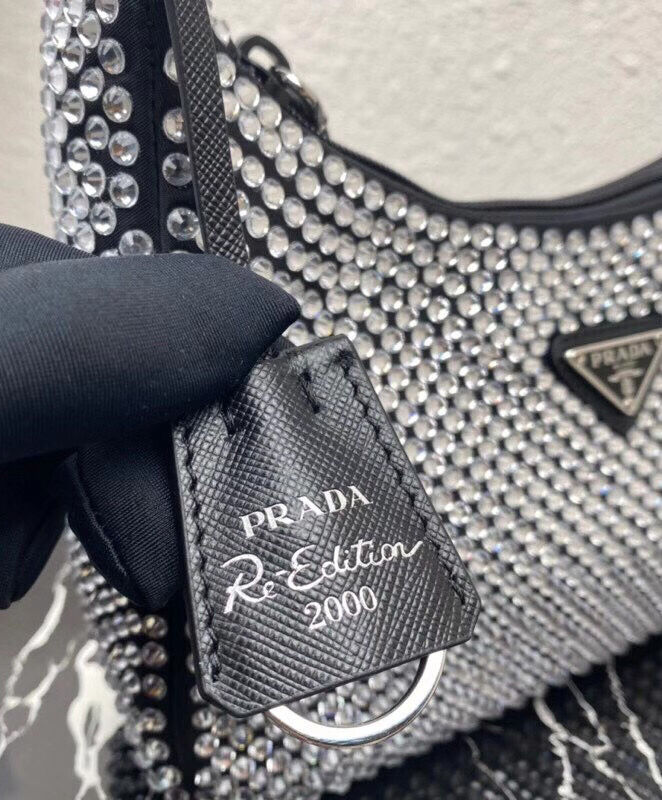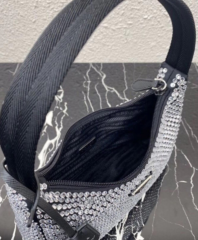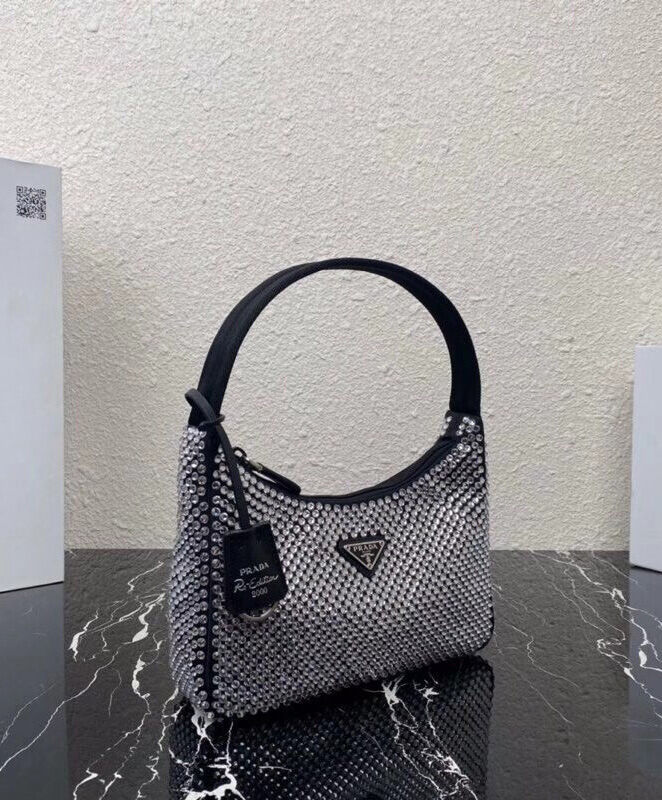 Prada Satin Mini-Bag With Artificial Crystals 1NE515 Black