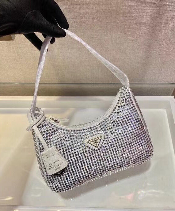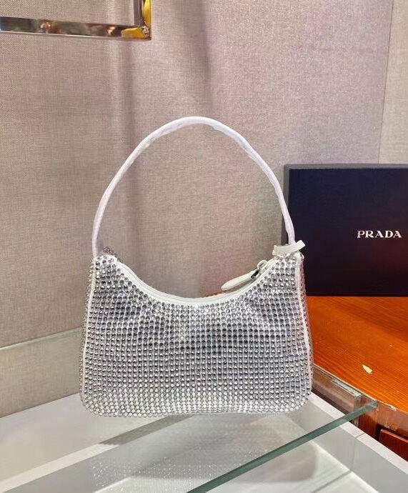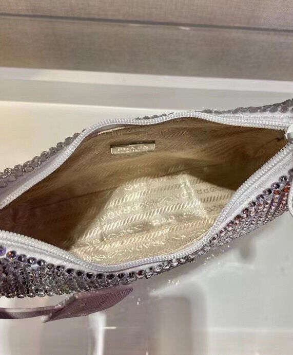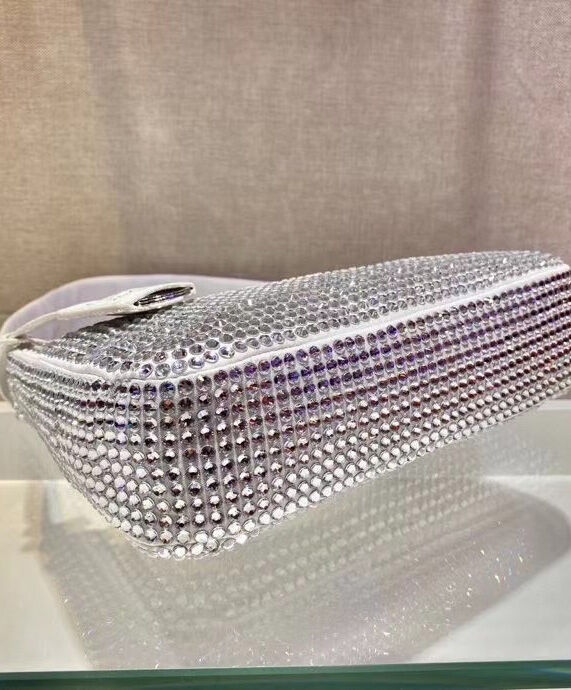 Prada Satin Mini-Bag With Artificial Crystals 1NE515 White