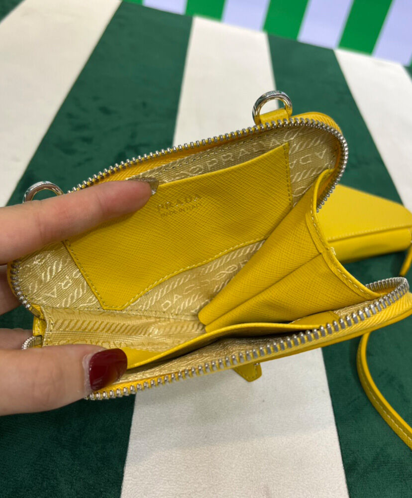 Prada Saffiano Leather Mini Pouch 1NR015 Yellow
