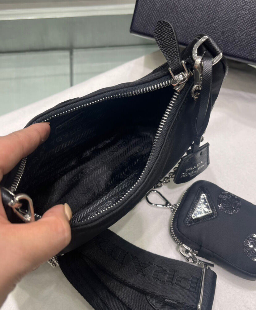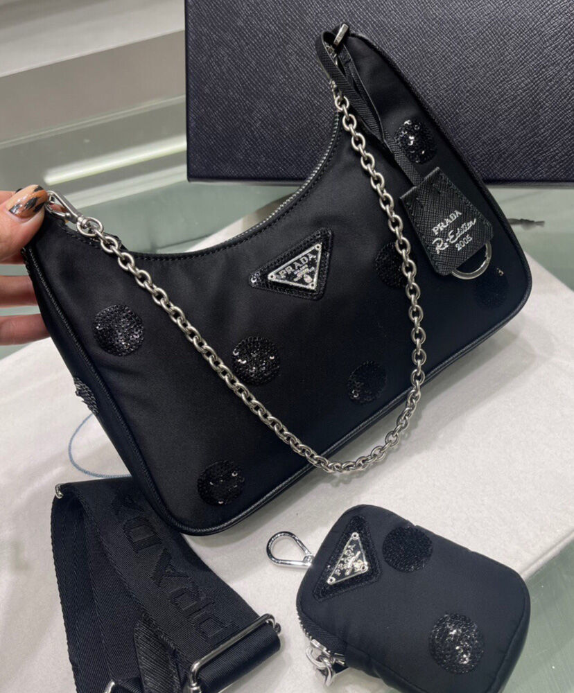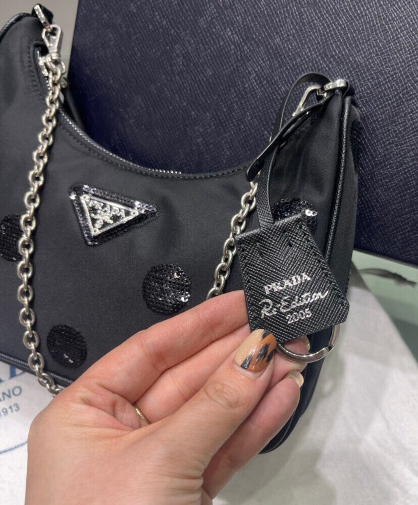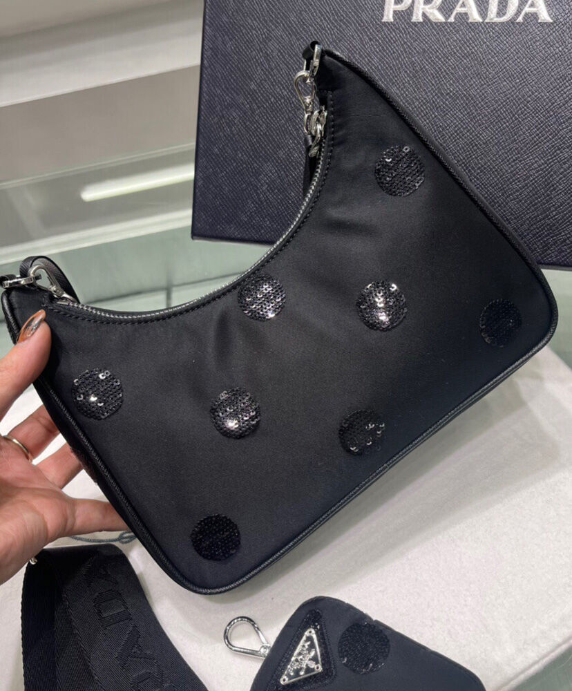 Prada Re-Edition 2005 Re-Nylon polka-dot bag 1BH2045 Black