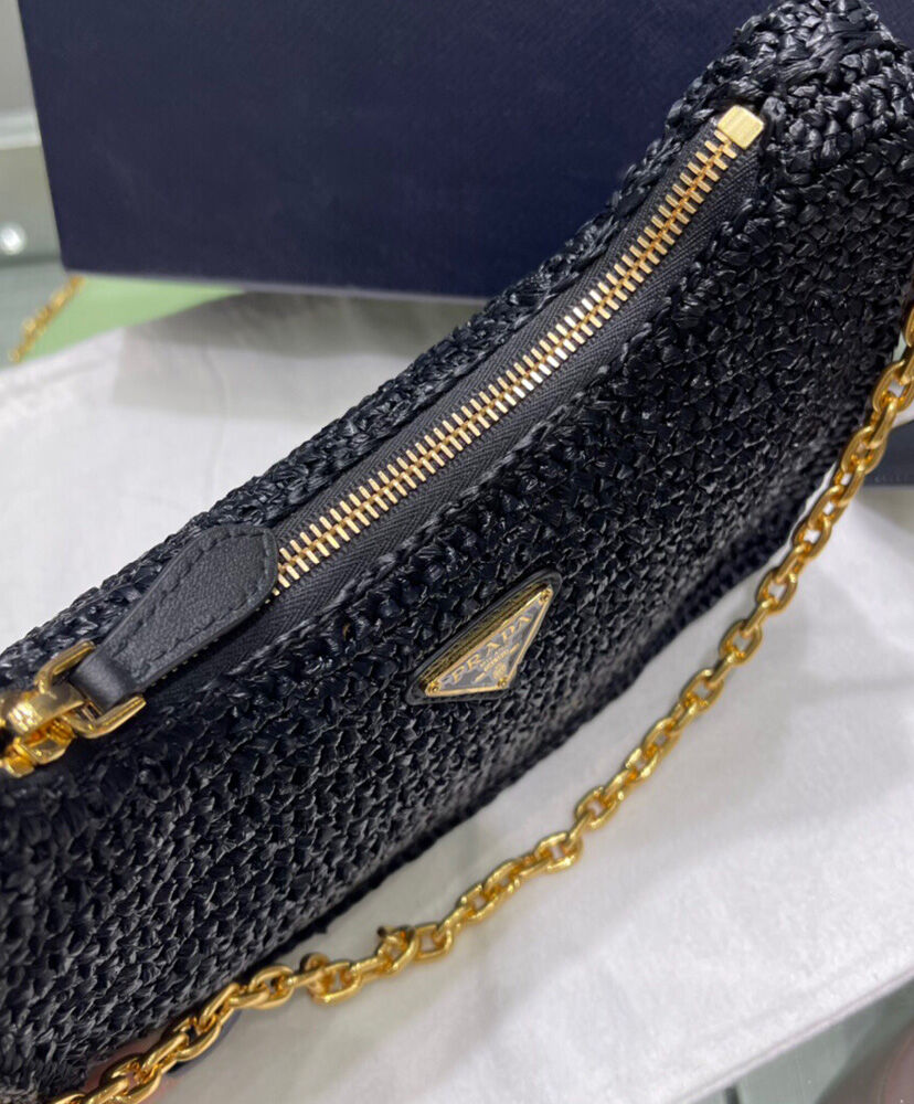 Prada Re-Edition 2005 Raffia Bag 1BH204 Black
