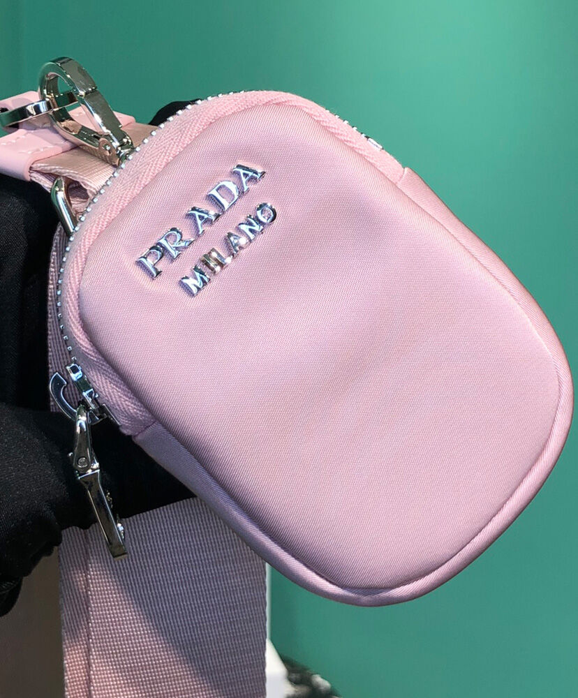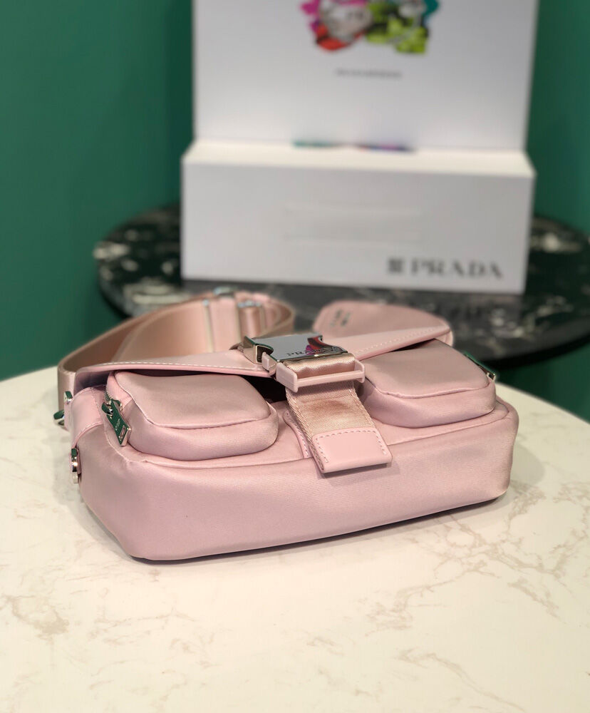 Prada Pocket Nylon And Brushed Leather Bag 1BA896 Pink