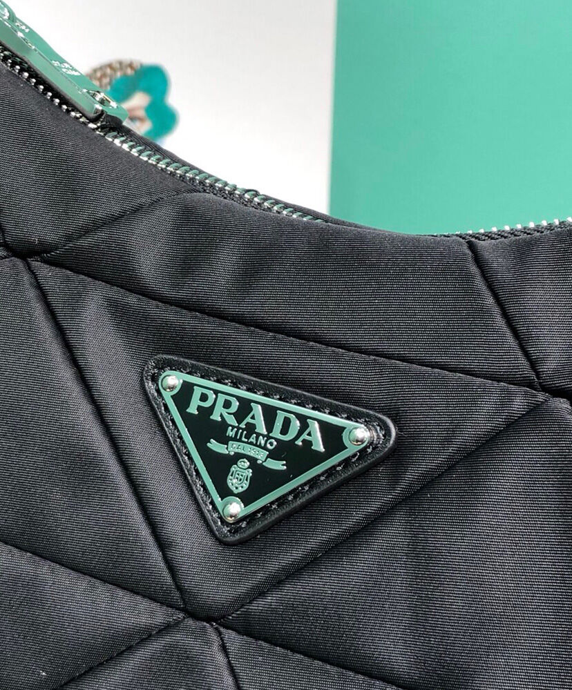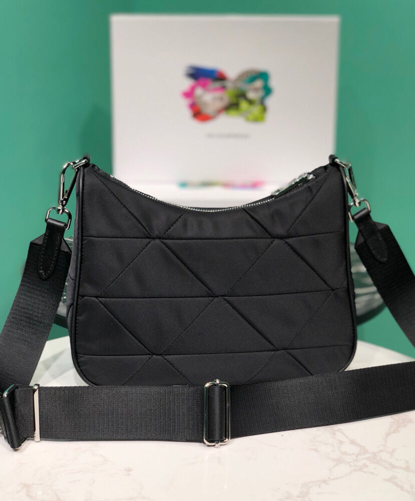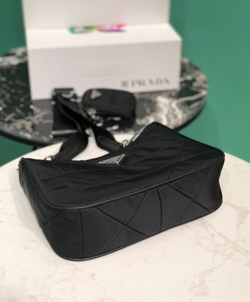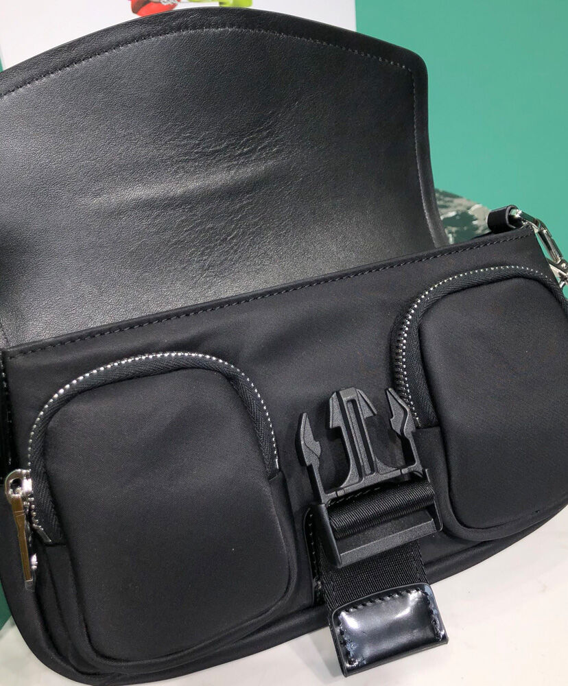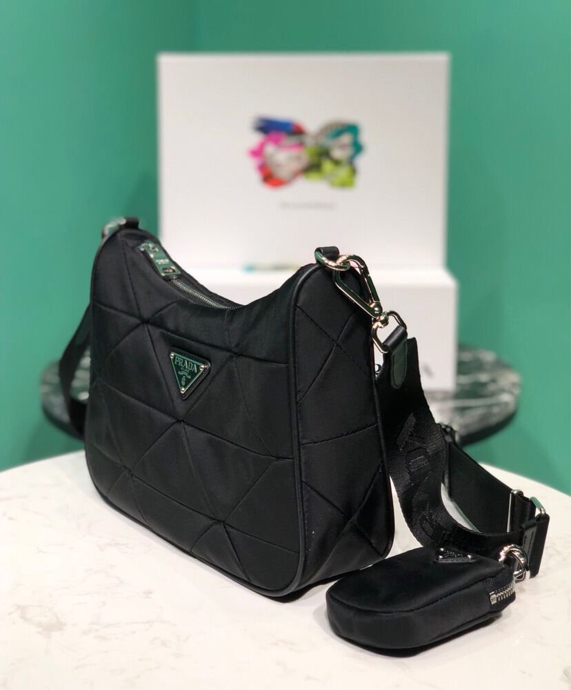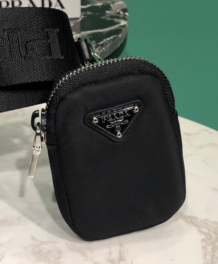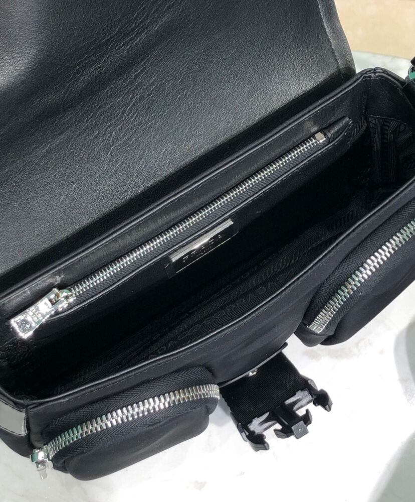 Prada Pocket Nylon And Brushed Leather Bag 1BA896 Black
