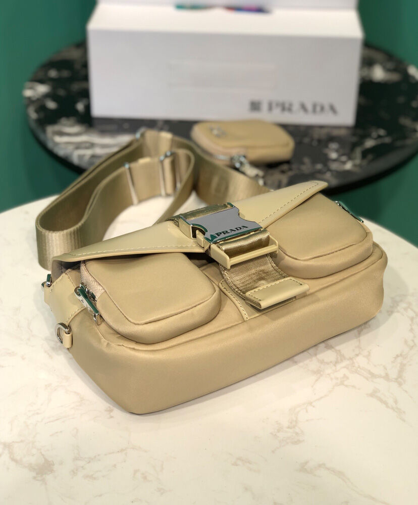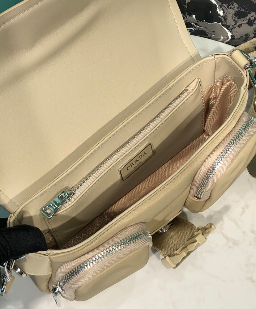 Prada Pocket Nylon And Brushed Leather Bag 1BA896 Apricot