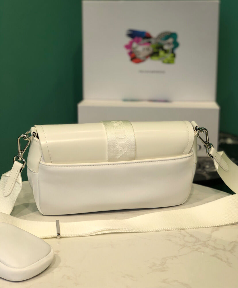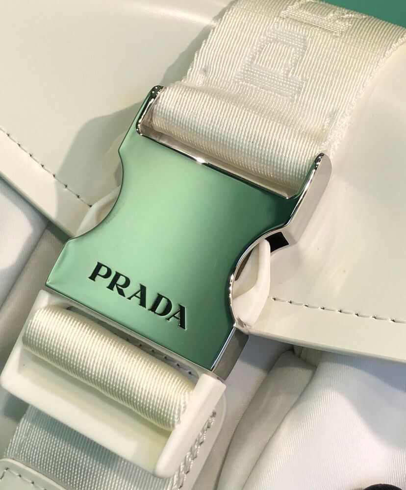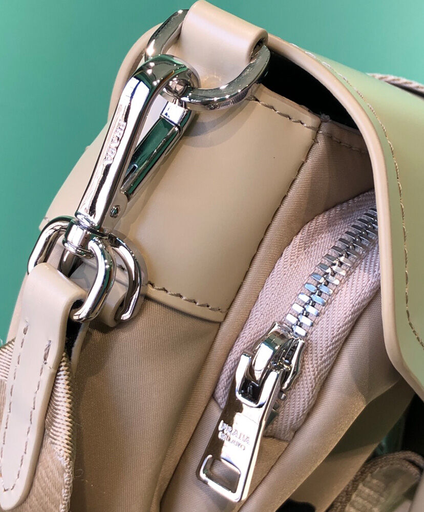 Prada Pocket Nylon And Brushed Leather Bag 1BA896 Cream